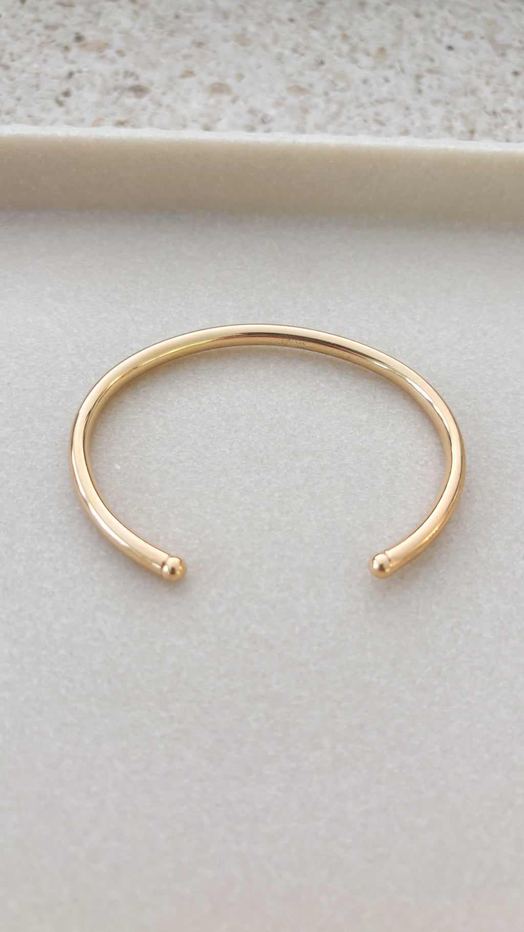 A sleek reversible tube bangle designed to be worn facing up or down. Adjustable for a comfortable, custom fit. Minimal on its own and striking when layered, this understated classic pairs effortlessly with every piece of gold jewelry in your wardrobe.