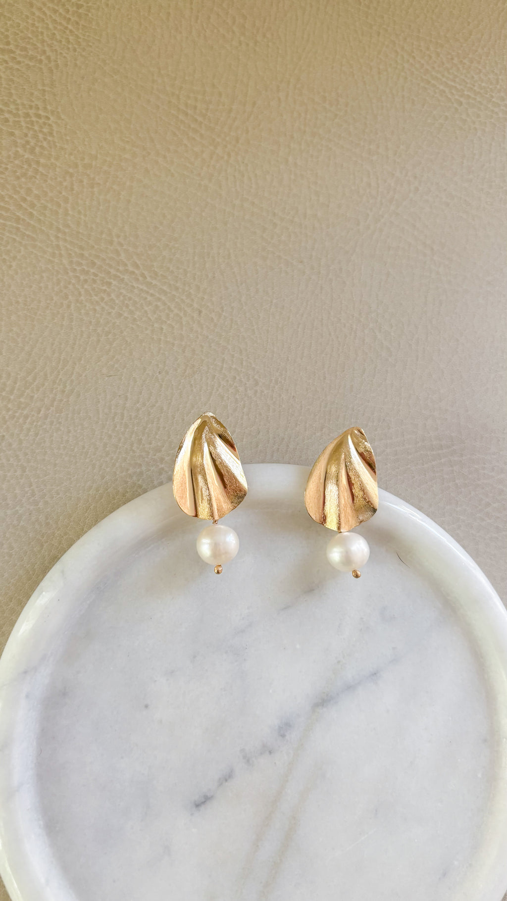 Sculptural and elegant, these matte-finish teardrop earrings feature a soft, wave-like design that flows into a luminous drop pearl. The unique texture adds a modern edge, while the pearl brings timeless grace. Lightweight yet eye-catching — perfect for elevating any look with effortless sophistication.