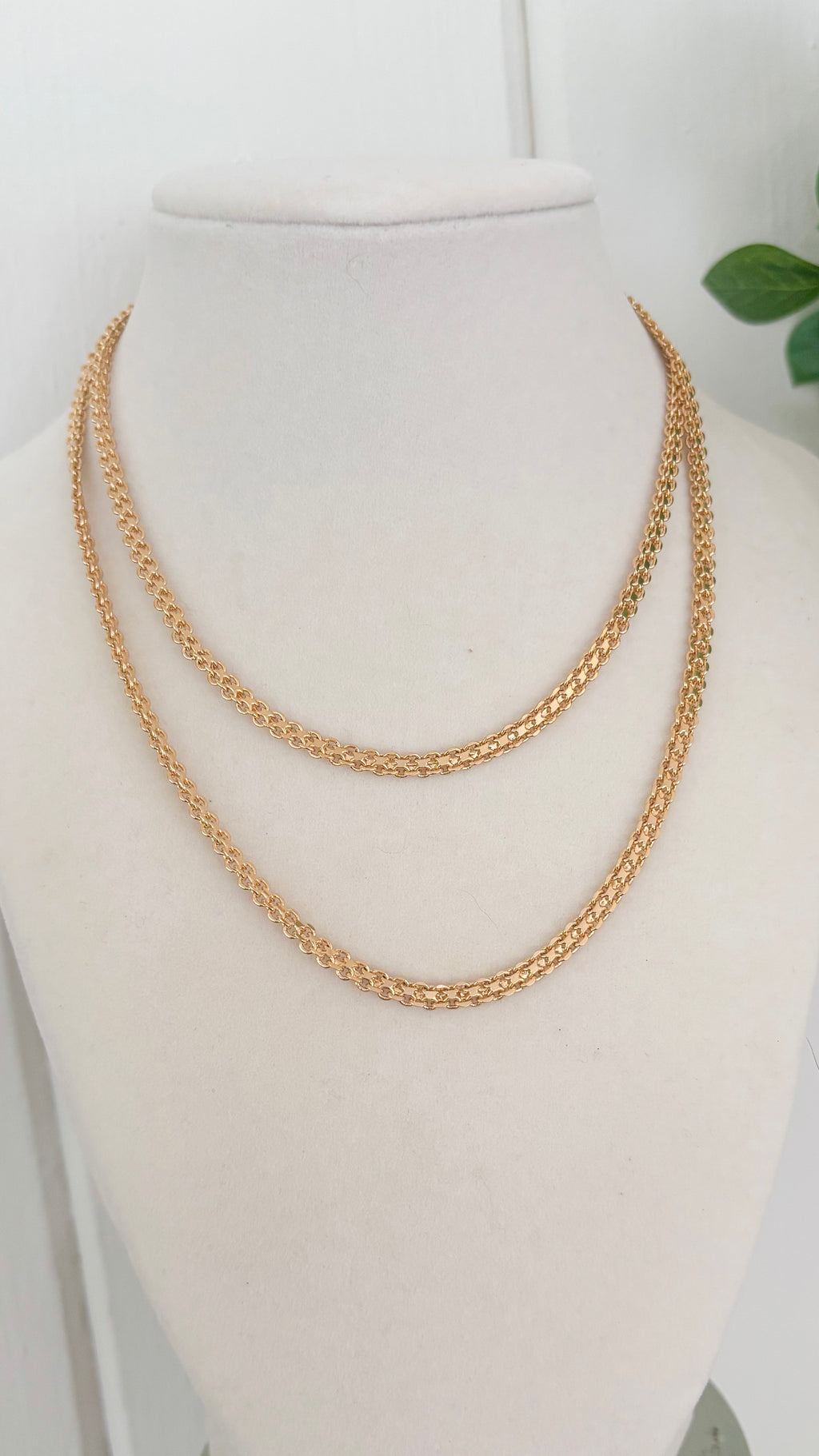 Add a touch of understated luxury with this long gold mesh chain necklace, designed for effortless versatility and elegance. Crafted from finely woven gold links, this mesh design offers a fluid, lightweight feel with a soft, radiant shimmer. Wear it long for a sleek, elongated effect or double it up for a layered, statement look. Perfect for transitioning from day to night, this timeless piece brings modern sophistication to any ensemble.